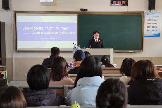 2025年12月4日上午,“一带一路”涉外法治沙龙第38期在我校成功举行,浙江省嘉兴市秀洲区人民检察院检察委员会委员、第二检察部主任徐悦,以《涉外检察的“剑”与“盾”——从刑事检察实务看涉外法务职业素养》为主题,为2025级国际经贸规则专业及“一带一路”涉外法治人才创新实验班同学授课。讲座由校“西溪学者”领军人才、“一带一路”学院、华侨学院、国际学院教授兰立宏主持。