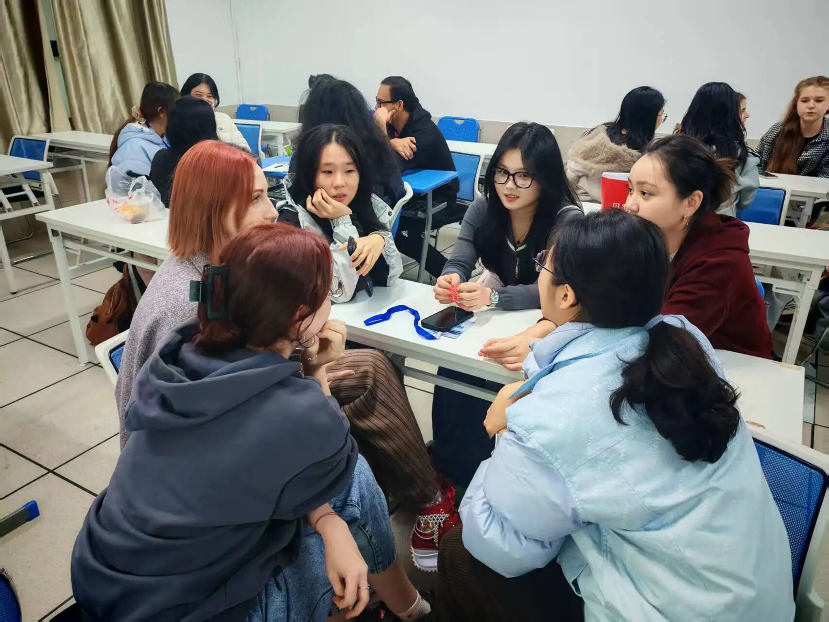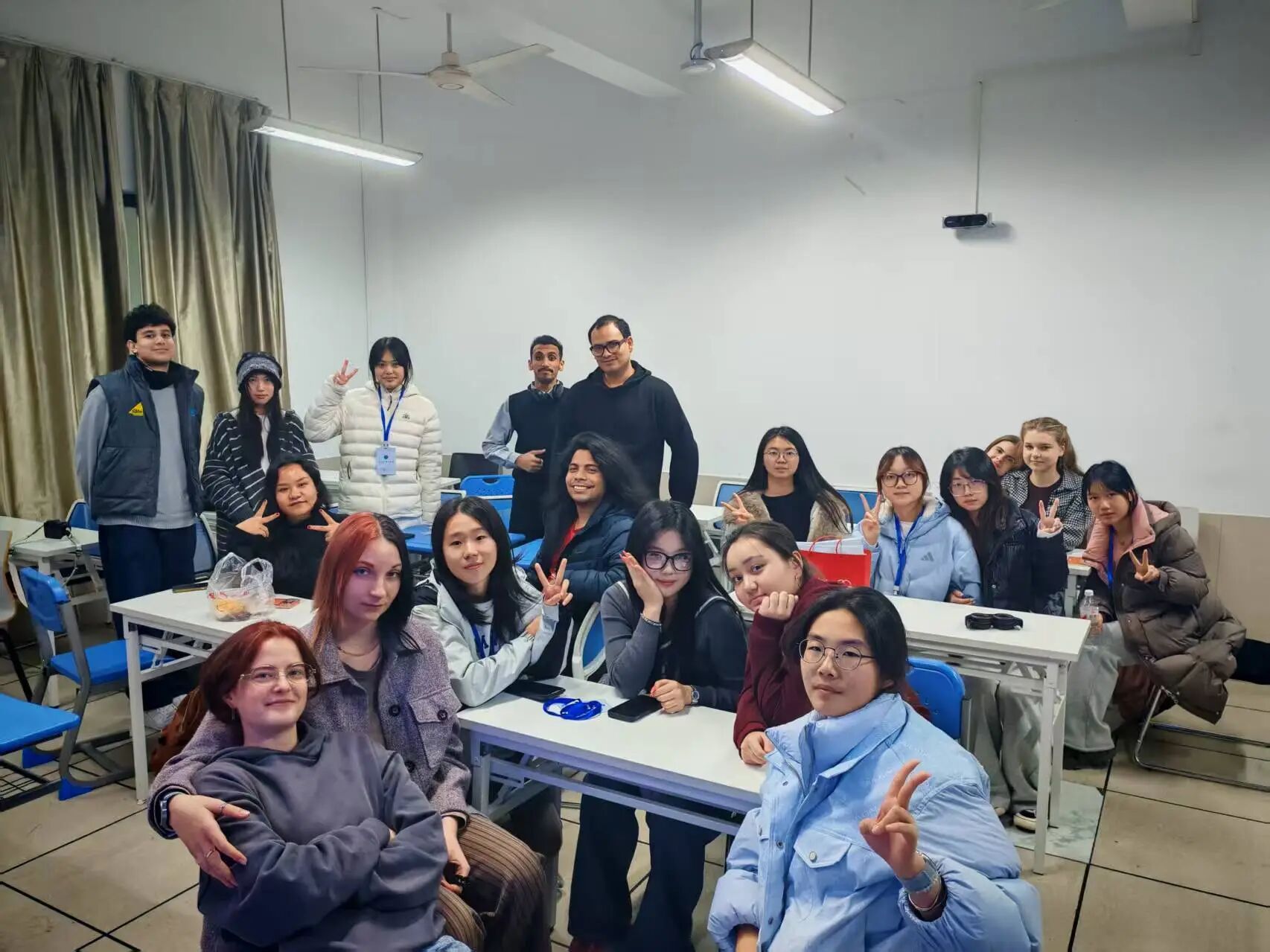12月1日晚,望D教室内灯火通明,笑声阵阵。本次汉语角借 “当代中文流行语解码”与“非遗鱼灯文化”两大主题,来自俄罗斯、越南、墨西哥等国家的数十名留学生如文化探险者般齐聚于此:有人带着听懂中国年轻人日常对话的期待而来,有人怀着亲手触摸古老手艺的向往而至。两个班级主题迥异却同样精彩,一场关于中文生命力与中华文化传承性的生动对话,已在温暖灯光下悄然展开。